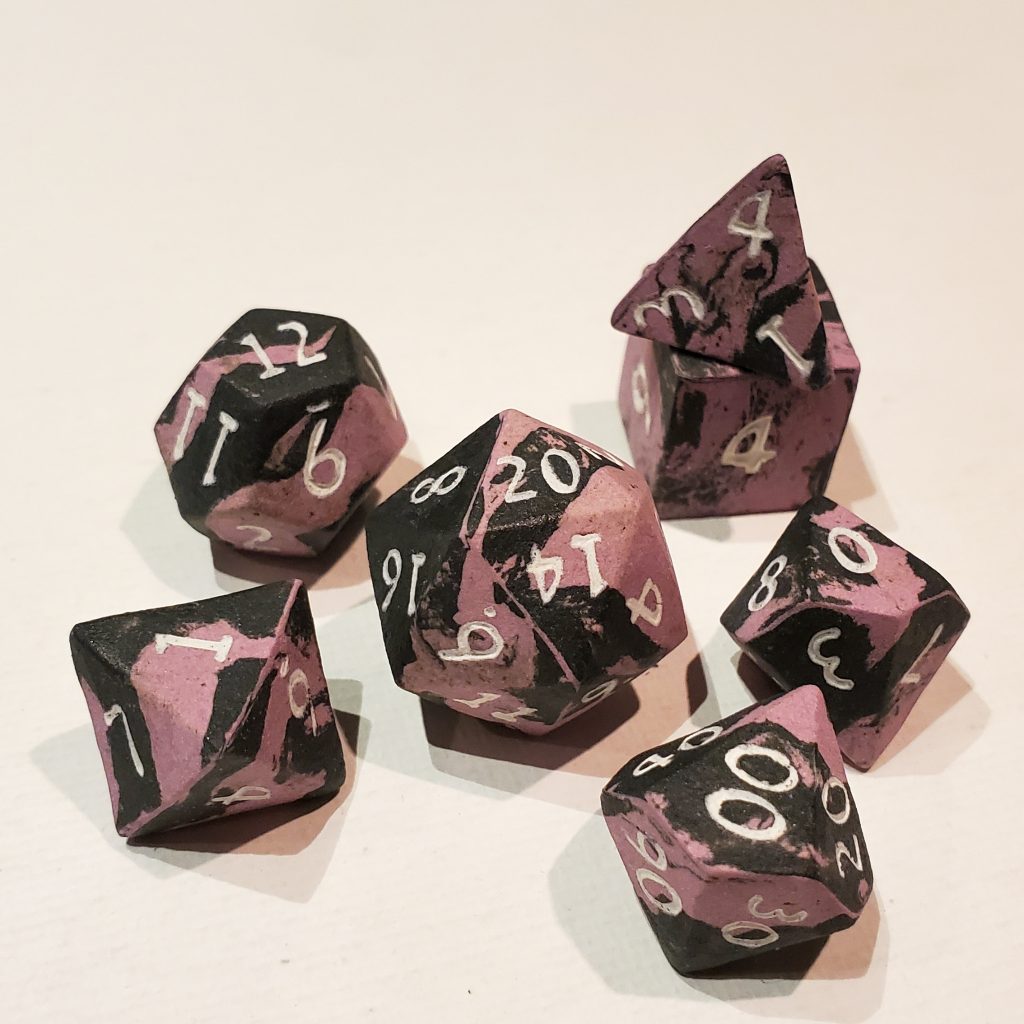 Our Pyschic Shadow Standard Ceramic Dice Set seamlessly integrates into any gaming session, offering both aesthetic appeal and functionality. With the standard array of seven dice, this set enhances your tabletop experience by providing balanced, reliable rolls. Crafted with precision, each die in this standard array exudes elegance and durability, ensuring that your adventures are as captivating as the dice themselves. Whether you’re a seasoned gamer or new to the world of tabletop role-playing games, this set promises to elevate your sessions with its exceptional quality and design.